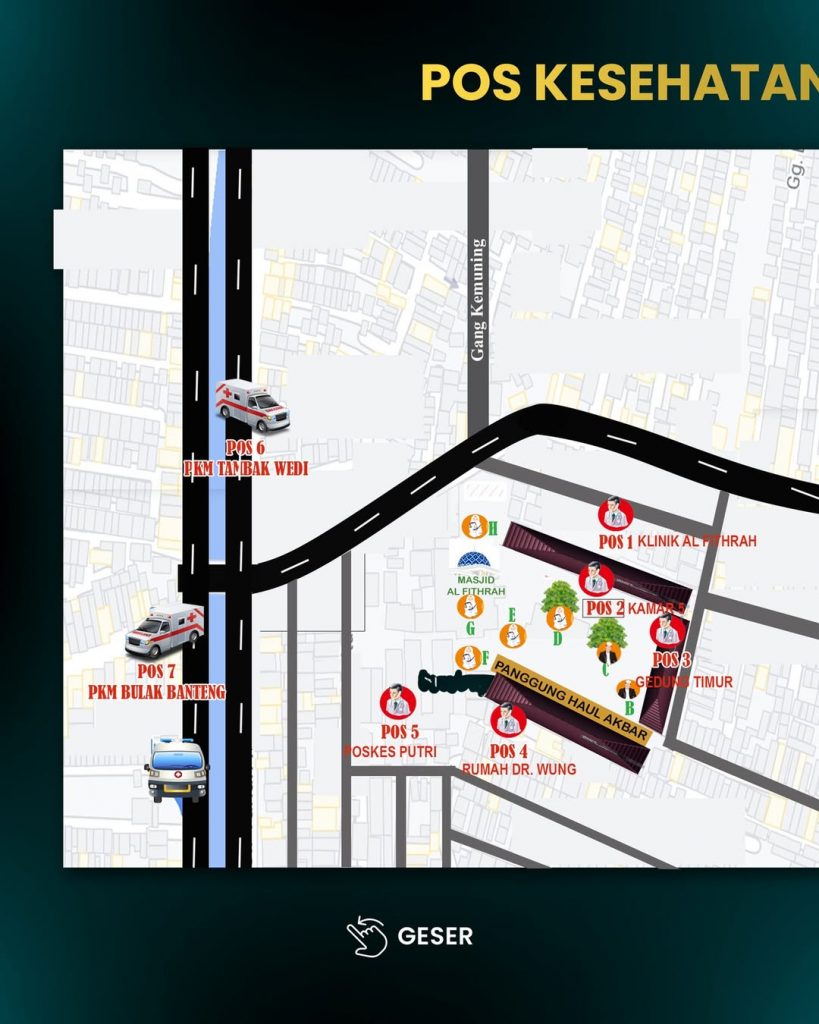 Dalam rangka menjaga keselamatan dan kesehatan jamaah selama rangkaian acara Haul Akbar Al Fithrah 2026, Panitia telah menyiagakan Posko Kesehatan dan Ambulance di berbagai titik strategis di sekitar area kegiatan.